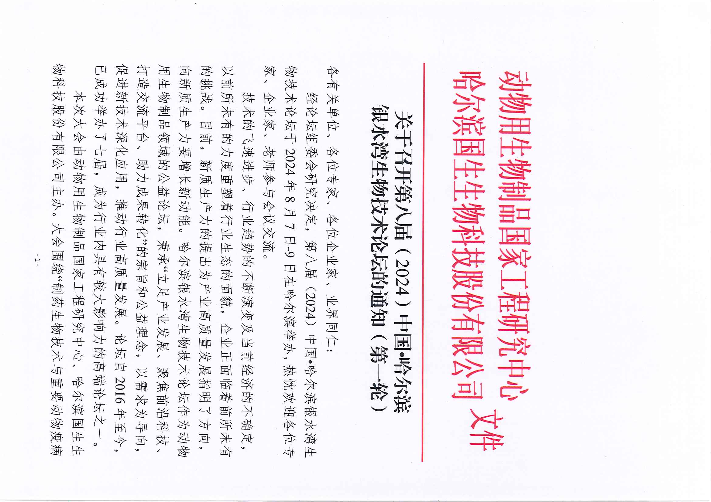 新闻动态 通知公告 人才招聘 银水湾论坛 关于召开第八届(2024)中国·哈尔滨银水湾生物技术论坛的通知(第一轮) 上一条:第八届(2024)中国·哈尔滨银水湾生物技术论坛(第二轮通知) 下一条:动物用生物制品国家工程研究中心、哈兽研禽免疫抑制病创新团队、福建圣农集团圣泽生物及福建圣农集团技术中心党支部共建活动 返回上页